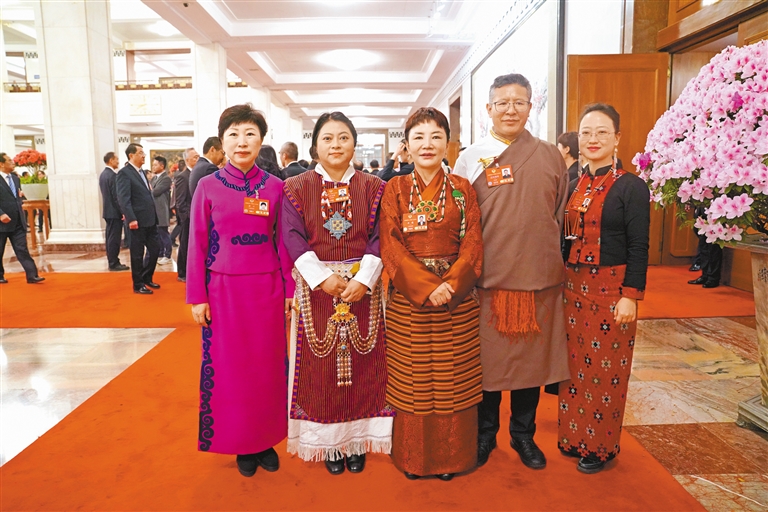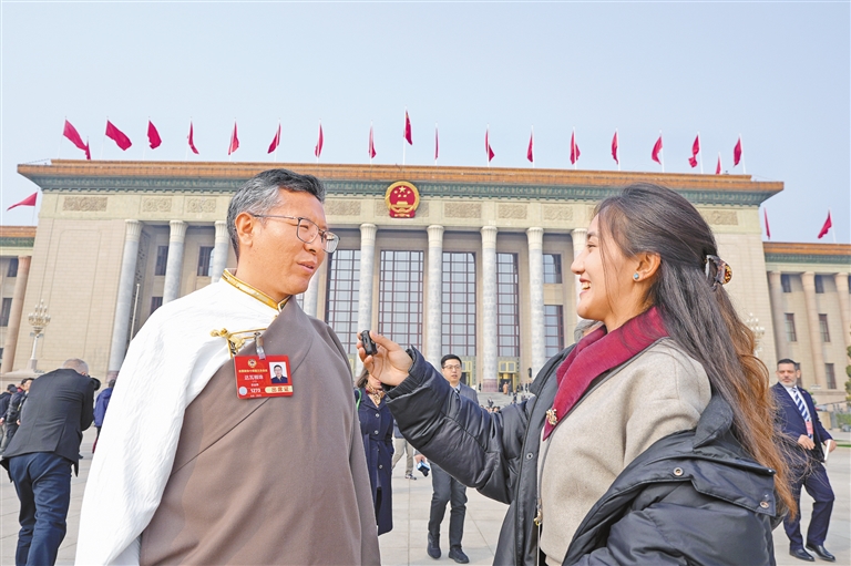 圖為住藏全國政協(xié)委員等參會(huì)人員在人民大會(huì)堂前合影留念。記者 旦增平措 次旦央吉 攝