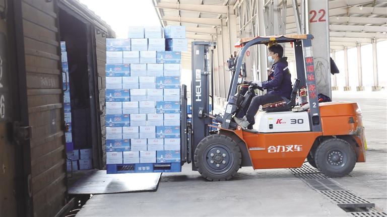 仲春時(shí)節(jié),海拔3650米的拉薩西貨場(chǎng)一片忙碌,一輛輛叉車(chē)穿梭往來(lái),將一箱箱“卓瑪泉”天然礦泉水裝入列車(chē)車(chē)廂。車(chē)廂裝滿(mǎn)后,這些載著“雪域好水”的貨運(yùn)列車(chē)將跨越雪山草原,把來(lái)自雪域的純凈與甘甜送往區(qū)外千家萬(wàn)戶(hù)。