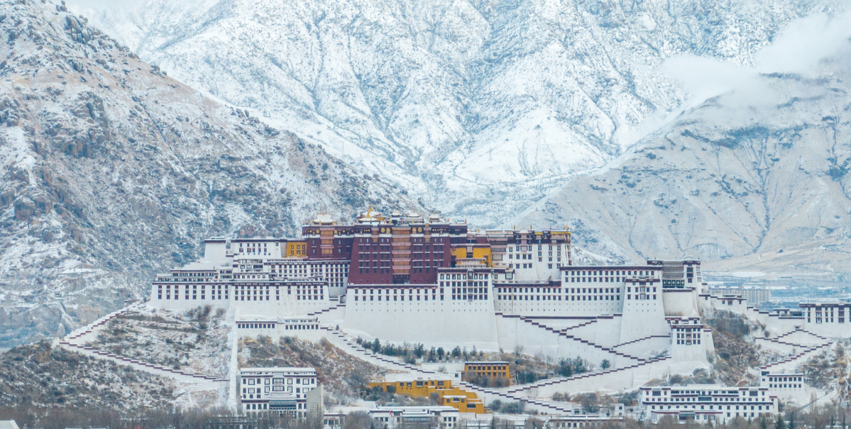 2月16日,無人機拍攝的布達拉宮的雪景。(圖片來源:新華社)