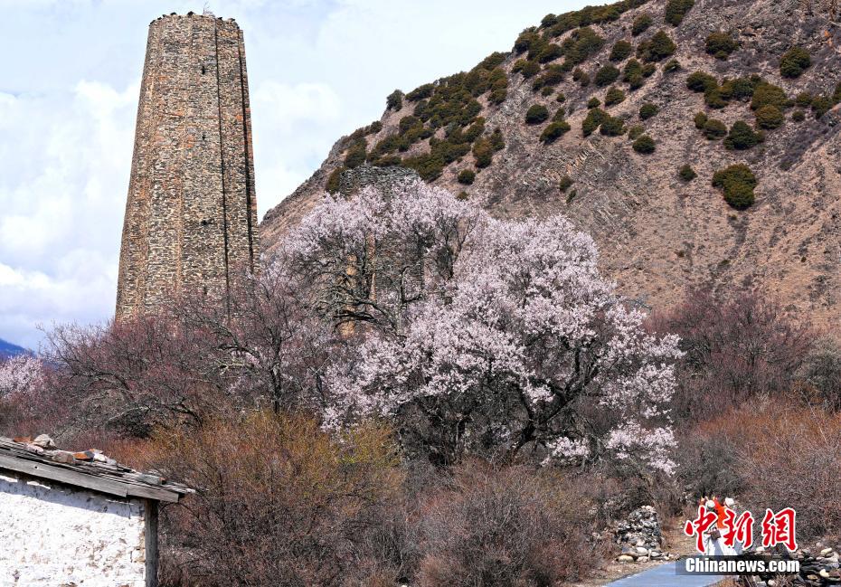 秀巴古堡位于西藏林芝市工布江達(dá)縣,是古代的軍事設(shè)施,距今已有1600多年的歷史。時(shí)下,古堡之下遍布的桃花競(jìng)相綻放,粉白桃花點(diǎn)綴著滄桑古堡,景色壯麗。圖為4月5日,秀巴古堡下桃花綻放。中新社記者 李林 攝