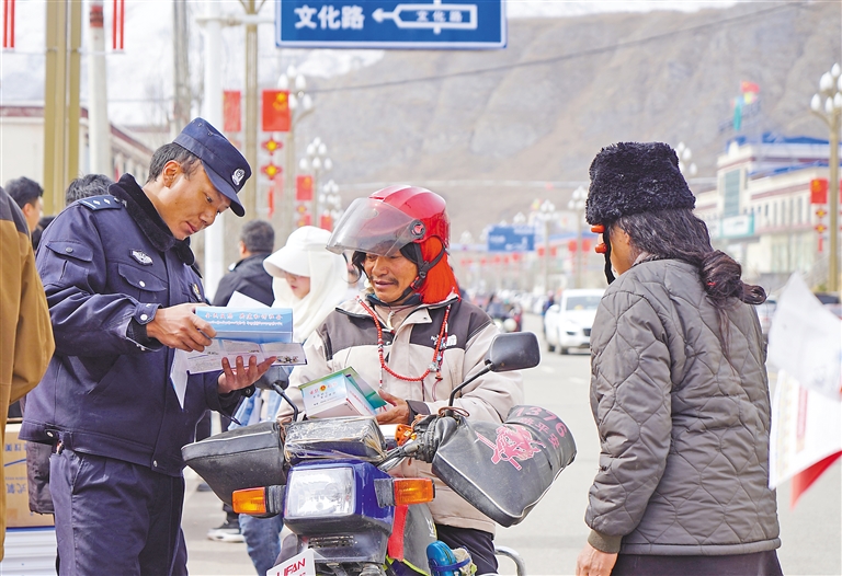 林芝市各邊境派出所民警深入轄區(qū)、學(xué)校、景點(diǎn),化身“普法宣傳員”,用通俗易懂的語(yǔ)言向群眾普及國(guó)家安全法等法律法規(guī),將國(guó)家安全知識(shí)送到群眾身邊,讓總體國(guó)家安全觀意識(shí)根植群眾心中。