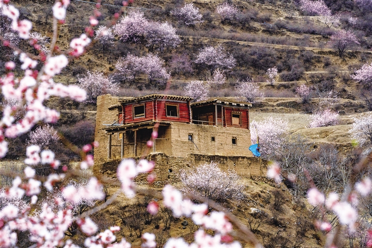 三月的最后一天清晨9時(shí),“走進(jìn)昌都 約會(huì)春天”采風(fēng)團(tuán)一行驅(qū)車(chē)前往隱匿于貢覺(jué)縣莫洛鎮(zhèn)的達(dá)律王府。這座始建于吐蕃時(shí)期的宮殿,因未對(duì)外開(kāi)放,我們幸得當(dāng)?shù)匚穆貌块T(mén)協(xié)助,聯(lián)系到女主人桑杰拉姆,方得以踏入這座占地400平方米的藏式建筑瑰寶。