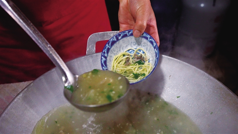2010年,鹽井加加面被列入西藏自治區(qū)級(jí)非物質(zhì)文化遺產(chǎn)代表性名錄。37歲的果拉卓瑪,是這項(xiàng)技藝的傳承者之一。她回憶道,早年父母在街邊支攤賣面時(shí),加加面只是再尋常不過(guò)的一道家常面食。如今,這碗面被賦予了文化符號(hào)的意義——食客們比拼碗數(shù),最高紀(jì)錄達(dá)147碗,若破紀(jì)錄,還能終生免費(fèi)吃面?!笆^計(jì)數(shù)、民歌敬酒,這些傳統(tǒng)習(xí)俗讓吃面變成了一場(chǎng)熱鬧的儀式。”果拉卓瑪笑著說(shuō)。