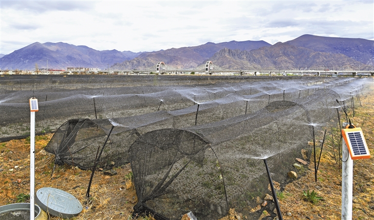 藏建物生鄉(xiāng)土苗木培育基地內(nèi)的全自動灌溉設(shè)備。記者 次仁平措 攝
