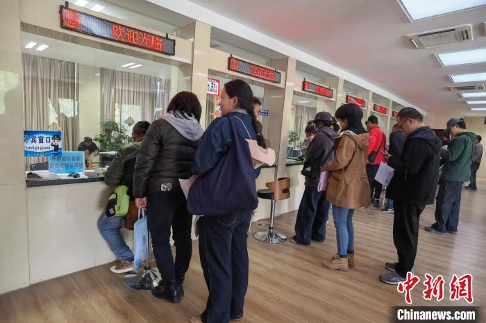 圖為西藏出入境邊防檢查總站辦證大廳,民眾正排隊(duì)辦理證件。徐錫萬 攝