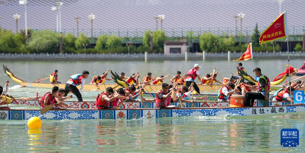 5月31日,參賽隊(duì)伍在龍舟比賽中。新華社記者 晉美多吉 攝