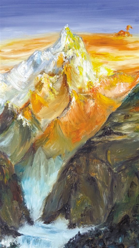 澤巴珍油畫作品《雪域情》。