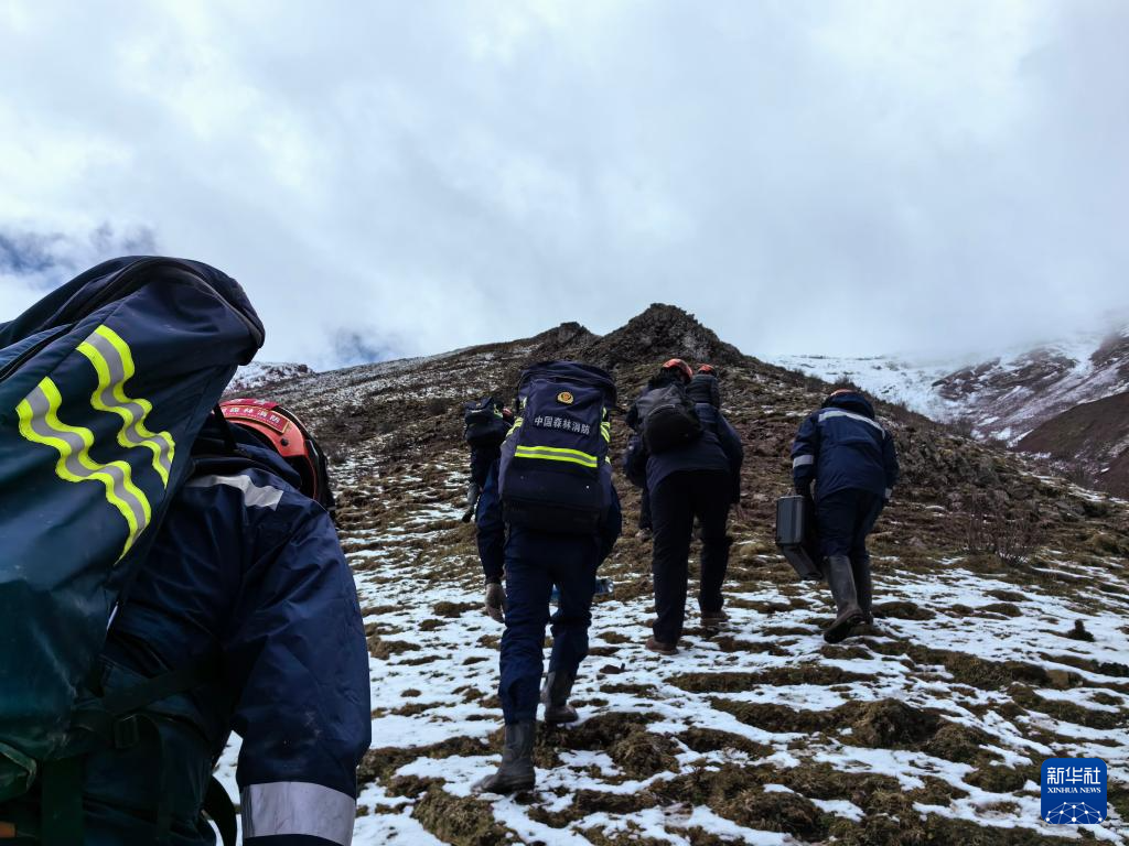 這是6月3日拍攝的森林消防戰(zhàn)士陪同專家組前往現(xiàn)場勘測。新華社發(fā)