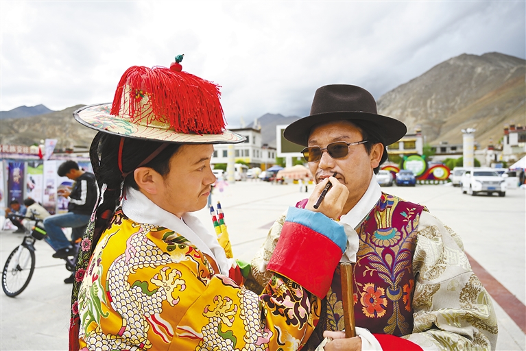 在日喀則市喜迎西藏自治區(qū)成立60周年暨2025年“文化和自然遺產(chǎn)日”非遺宣傳展示活動中,來自全市各縣(區(qū))的19支藏戲隊輪番展演,各色非遺產(chǎn)品集中亮相,為現(xiàn)場觀眾獻上了一場“非遺盛宴”。