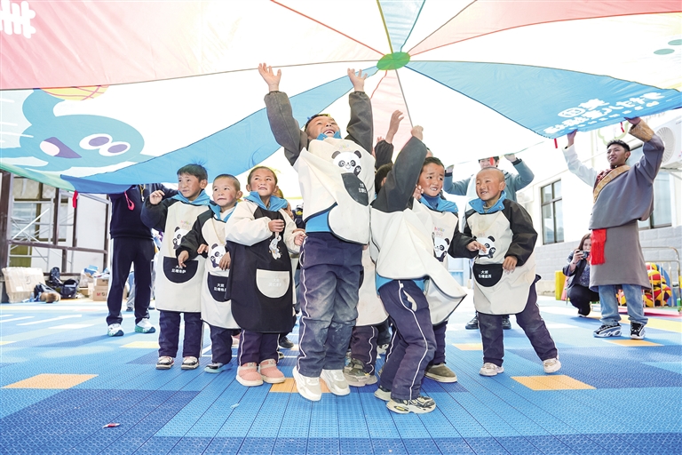 “老師快看!這里有跑道和斑馬線(xiàn),太漂亮啦!”定日縣長(zhǎng)所鄉(xiāng)幼兒園的拉巴次仁第一次踏上新落成的“太陽(yáng)花”操場(chǎng),興奮地邊跑邊向老師展示。據(jù)記者了解,此前孩子們?cè)谄茡p的懸浮地板上活動(dòng)時(shí)經(jīng)常摔倒,遇上雨雪天氣,戶(hù)外活動(dòng)也只能取消。