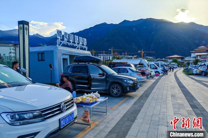6月26日傍晚,西藏林芝宇拓公園自駕露營(yíng)地內(nèi)停放著來自中國(guó)各地的進(jìn)藏車輛,該營(yíng)地設(shè)有兩處公共廚房和浴室,方便自駕游客休整。中新社記者 江飛波 攝