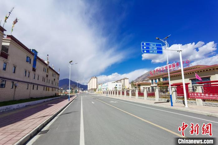 紅頂白墻的樓房整齊排列,柏油馬路平坦寬闊,商鋪招牌林立,文化廣場上健身器材锃亮如新……這是西藏自治區(qū)拉薩市堆龍德慶區(qū)乃瓊街道色瑪社區(qū)如今的面貌,很難想象,在2006年青藏鐵路格拉段(格爾木至拉薩)通車前,這里曾是塵土飛揚(yáng)的村落。