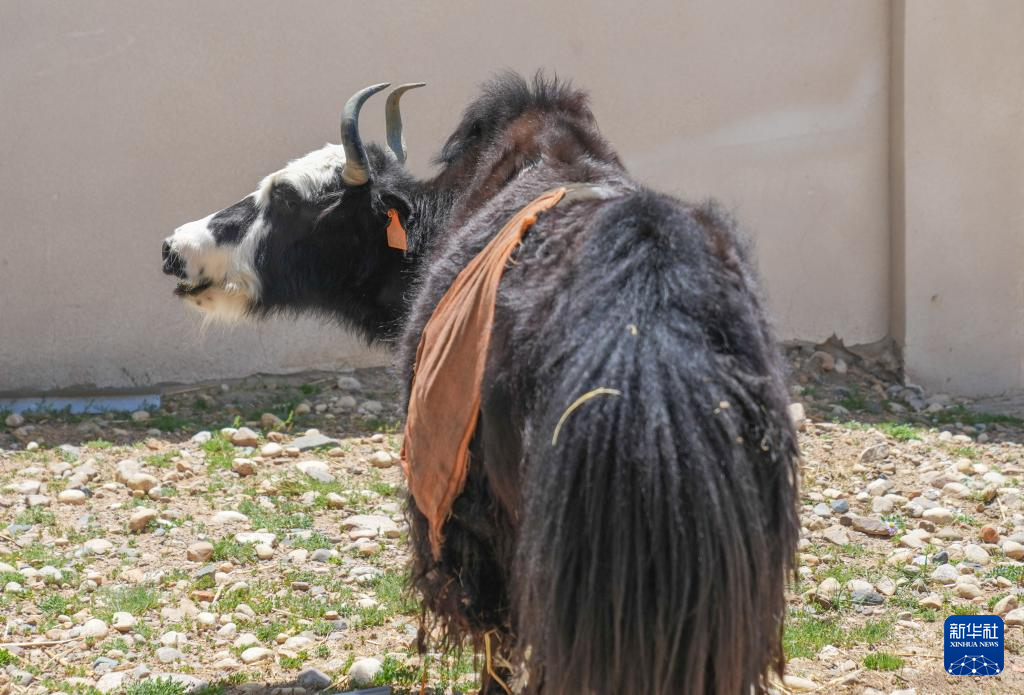 7月11日,在西藏(當(dāng)雄)金絲野牦牛繁育基地,工作人員檢查克隆牦牛身體狀況。新華社記者 晉美多吉 攝?