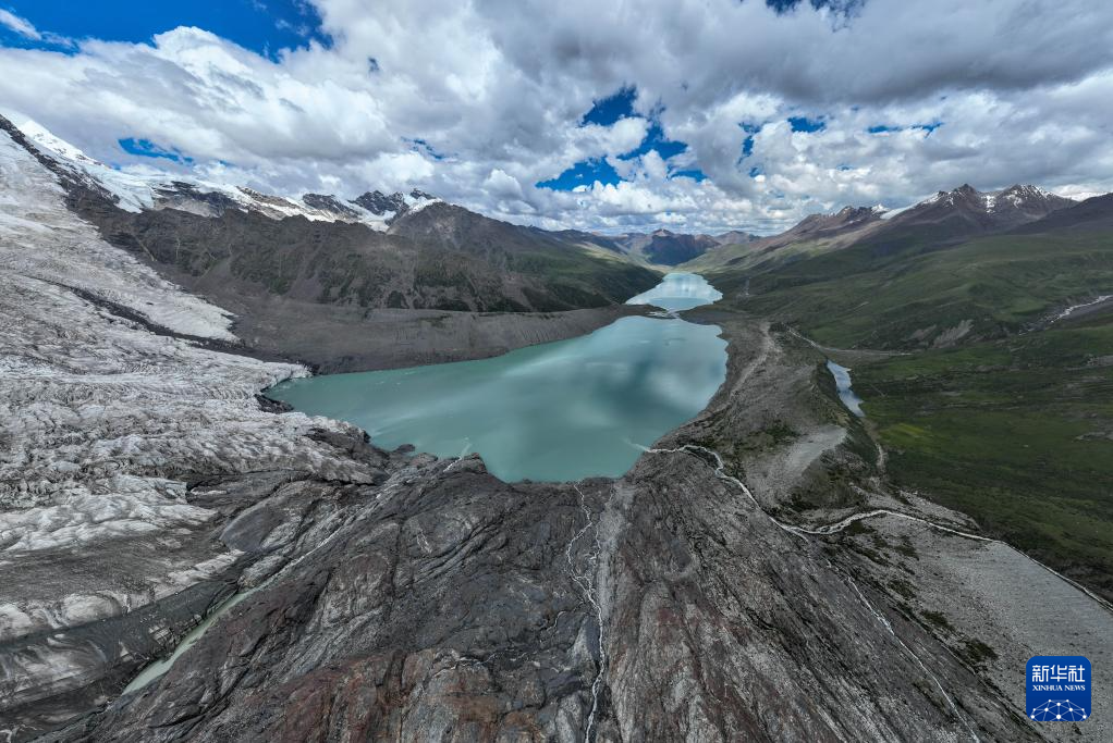 7月19日拍攝的薩普冰川冰舌末端(無(wú)人機(jī)照片)。新華社記者 晉美多吉 攝