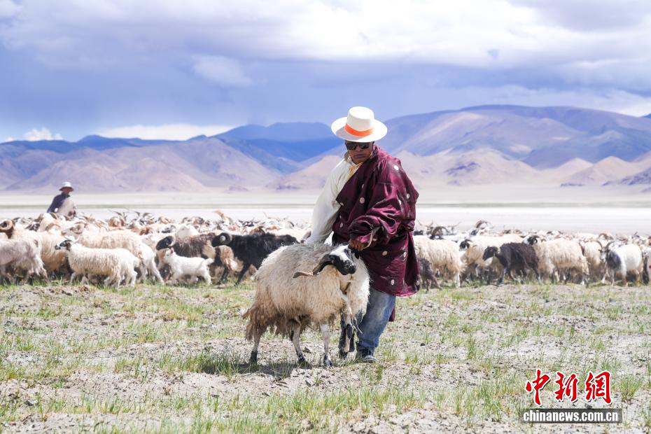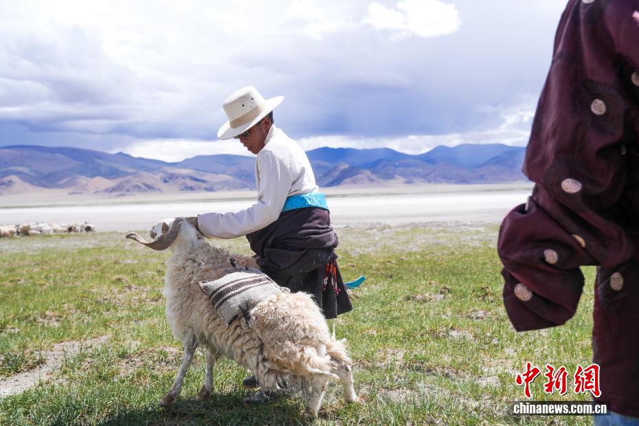 7月20日,在西藏阿里地區(qū)革吉縣鹽湖鄉(xiāng),牧民從羊群中牽引一只將要馱負鹽袋的羊。一千多年前,阿里地區(qū)有50多家駐扎的鹽幫,將自然鹽用羊馱牛背邊放牧邊運輸?shù)姆绞?,運送到普蘭、日喀則、印度、尼泊爾等地,并用以物易物的方式換回青稞、磚茶、布料等日常生活所需的物品,從而孕育了遠負盛名的“鹽羊古道”傳奇。近年來,當(dāng)?shù)亻_辦粗鹽巴加工廠、打造“鹽羊古道”旅游品牌等方式,使千年“鹽羊古道”煥發(fā)新生機。中新社記者 張祥毅 攝
