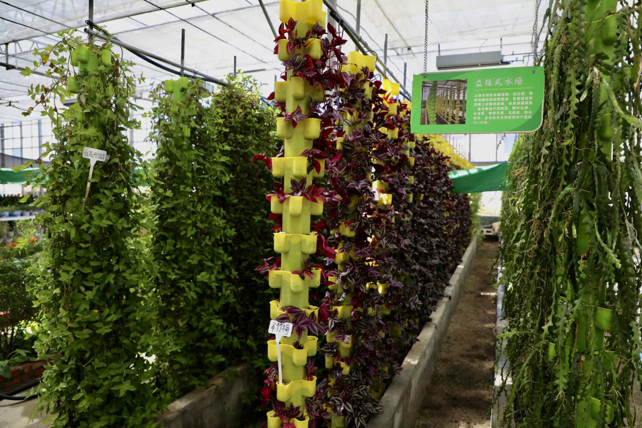 圖為才納園區(qū)內(nèi)立柱式水培 。人民網(wǎng)記者 次仁羅布攝。