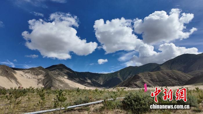 在南北山綠化工程貢嘎段11號片區(qū),西藏森拓雅實有限公司總經(jīng)理金輝望著漫山新綠回憶道,“從前,這里風沙肆虐,家家戶戶門窗緊閉,連飛機起降都成了難題,許多航班因無法降落被迫返航。而如今,風沙減少了一半,雨水也逐漸豐沛?!?/p>