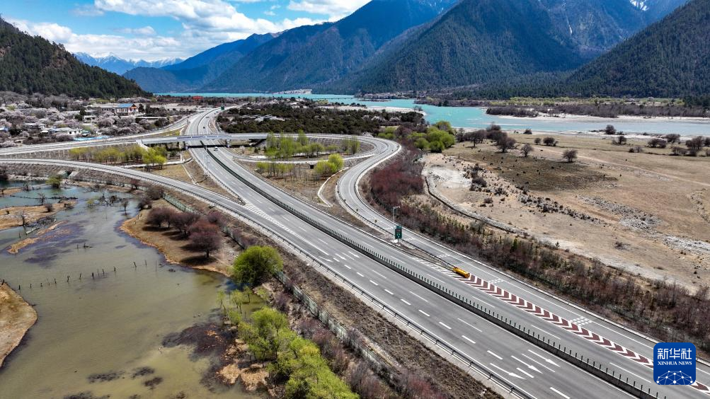 拉薩至林芝的高等級(jí)公路(無人機(jī)照片,2025年4月1日攝)。新華社記者 晉美多吉 攝