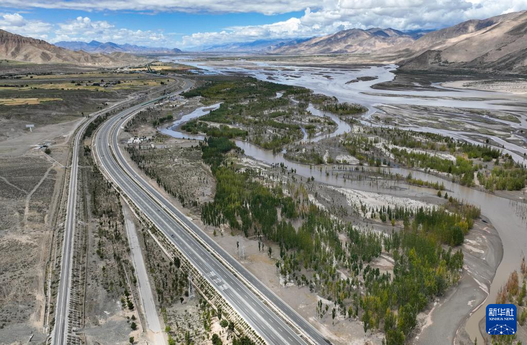 拉薩至日喀則的高等級(jí)公路(無人機(jī)照片,2024年9月11日攝)。新華社記者 晉美多吉 攝