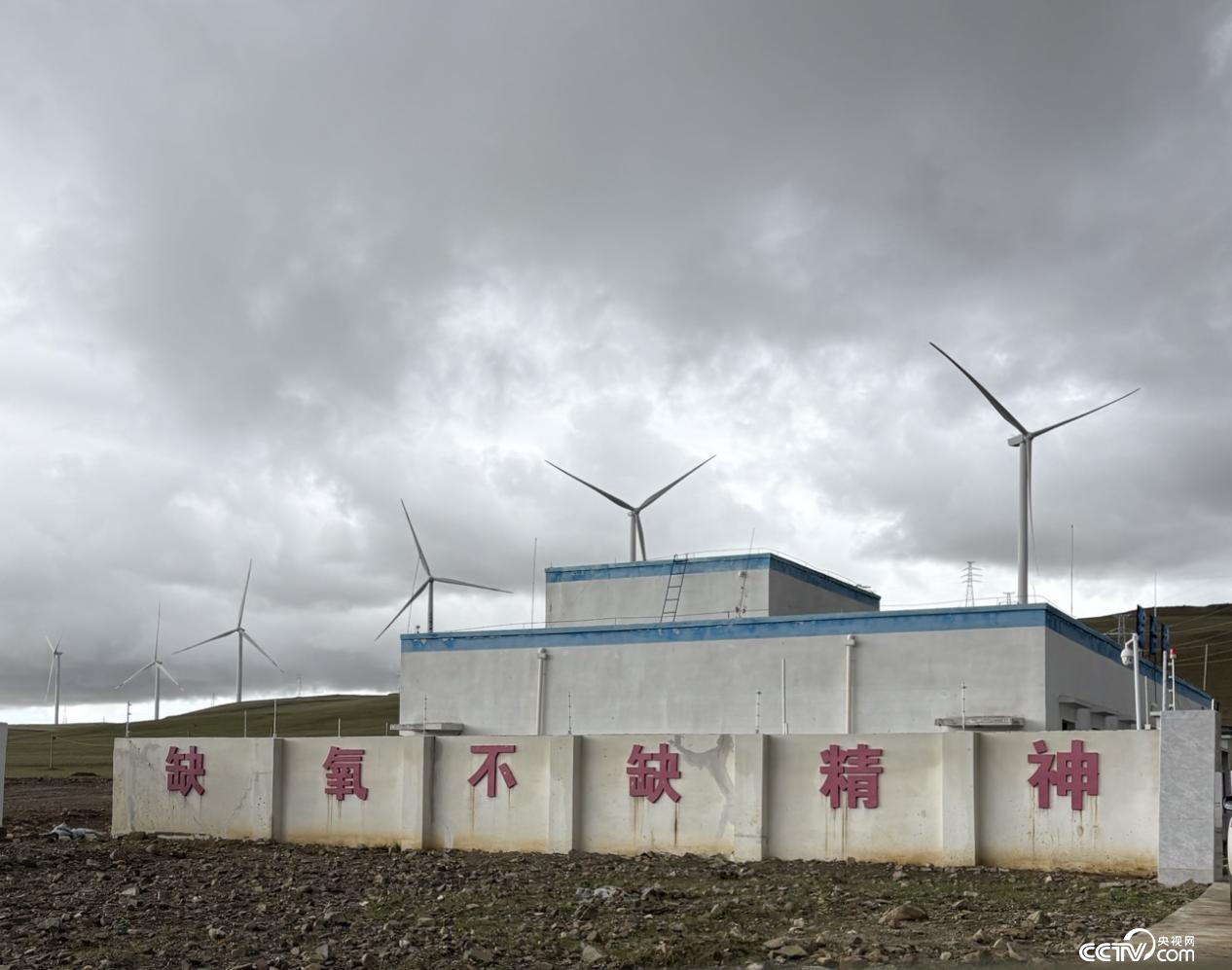在哲古草原,巨大的風(fēng)機(jī)葉片緩緩轉(zhuǎn)動(dòng),劃破長空。這里是三峽措美哲古風(fēng)電場——全球海拔最高的在運(yùn)行風(fēng)電場,墻上“缺氧不缺精神”的標(biāo)語,正是技術(shù)突破與綠色發(fā)展的信念的最好寫照。