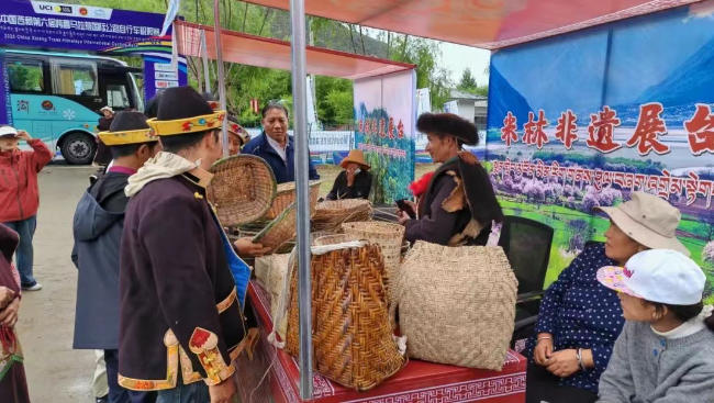 非遺展區(qū)同樣引人注目。展區(qū)內(nèi),珞巴織布、珞巴竹編、工布氆氌、工布畢秀四項非遺項目的傳統(tǒng)手工制品精巧陳列,這些凝聚匠心的展品集中展現(xiàn)了米林市非物質(zhì)文化遺產(chǎn)的深厚底蘊(yùn)和傳承活力,讓現(xiàn)場觀眾近距離感受了非遺文化的獨特魅力。