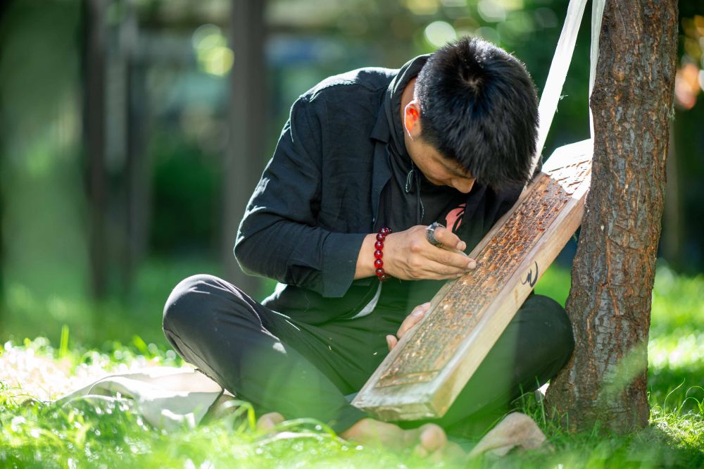 8月6日,雕刻師在工作中。西藏雪巴康雕版印刷制作技藝入選西藏自治區(qū)級非物質(zhì)文化遺產(chǎn)代表性項目名錄。