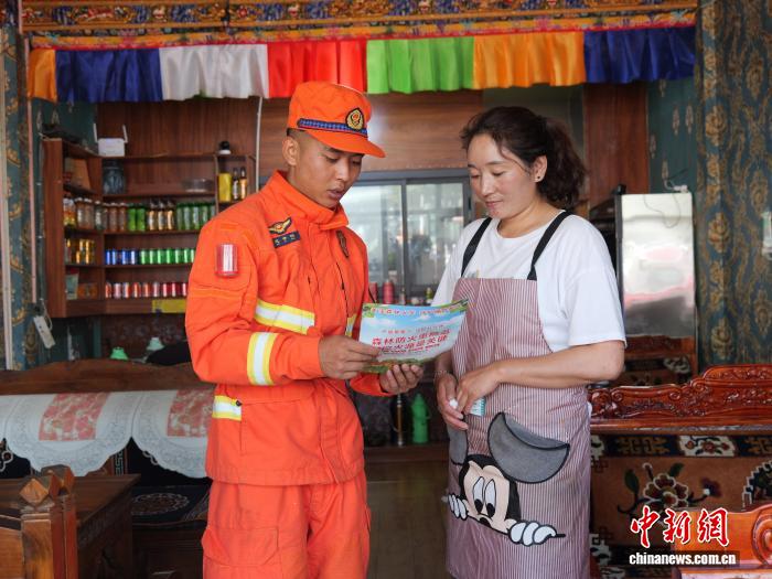 圖為消防隊員正在深入轄區(qū)沿街“入戶式”宣講防災減災知識。林芝市森林消防支隊供圖