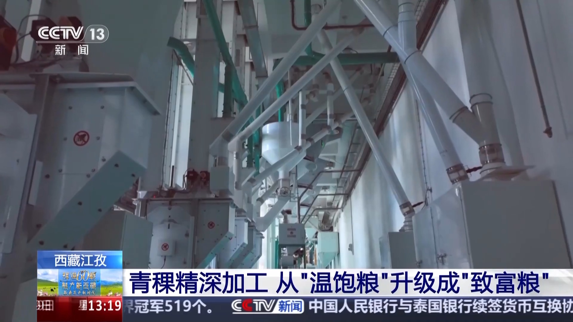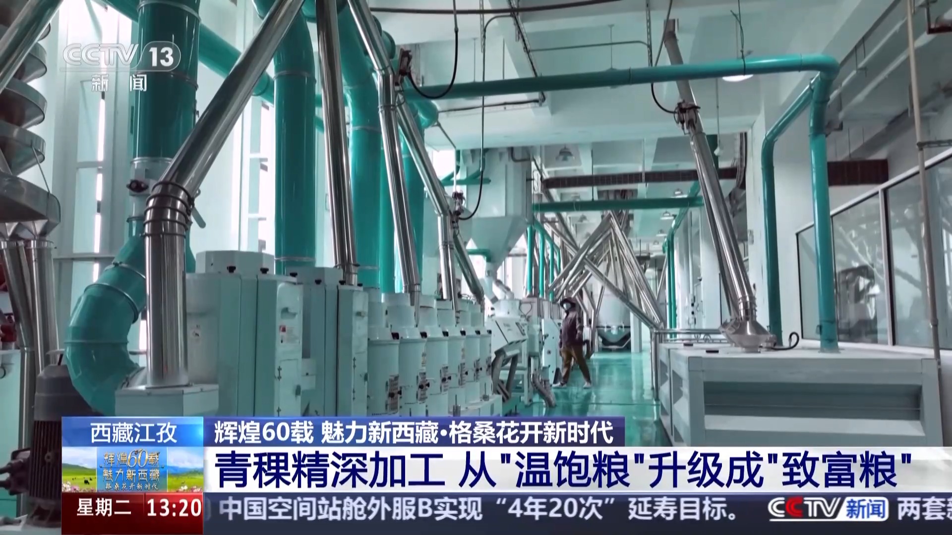 總臺(tái)記者 于晨:我現(xiàn)在是在江孜縣的一家專(zhuān)注于青稞產(chǎn)品研發(fā)的科技公司,去年9月,全國(guó)首條青稞谷物專(zhuān)用生產(chǎn)線(xiàn)在這里落地,填補(bǔ)了行業(yè)的空白,這讓青稞的得粉率由原來(lái)的60%以下提升至了70%以上。
