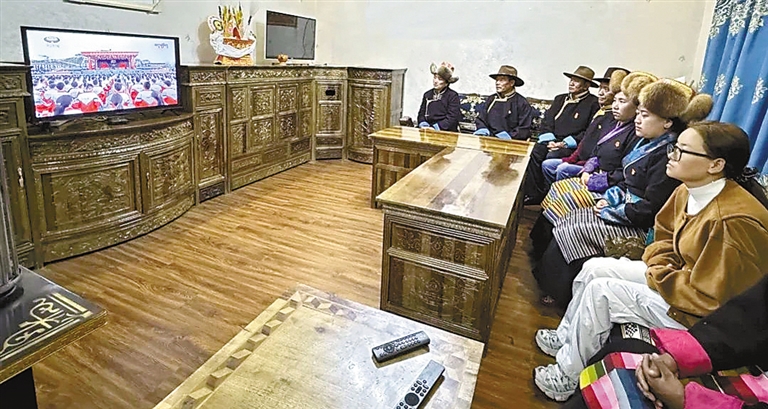 人民銀行日喀則市分行駐昂仁縣日吾其鄉(xiāng)日蘇村、西嘎村、普夏村、措嘎村、央曲村工作隊,組織村“兩委”班子、黨員干部、群眾集中收看了慶祝西藏自治區(qū)成立60周年大會實況直播,共同見證了這一重要歷史時刻。觀看過程中,大家心情激動,普夏村老人扎西表示:“以前怎么都不敢想,坐在家里就能看到拉薩的場景,在中國共產黨的領導下,我現(xiàn)在過上了以前想也不敢想的幸福生活,相信以后的生活會越來越好!”