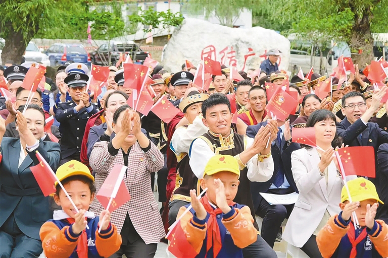 山南市隆子縣玉麥鄉(xiāng)干部群眾、派出所民警等來到愛國守邊先進事跡展館,集中收聽收看了慶祝大會直播。玉麥村的大學生尼瑪次仁說:“當看到山南彩車上‘家是玉麥,國是中國’的標語時,我感到非常驕傲與自豪。作為新時代青年,我要傳承好發(fā)揚好愛國守邊精神,時刻準備著到祖國和人民最需要的地方去?!?/p>