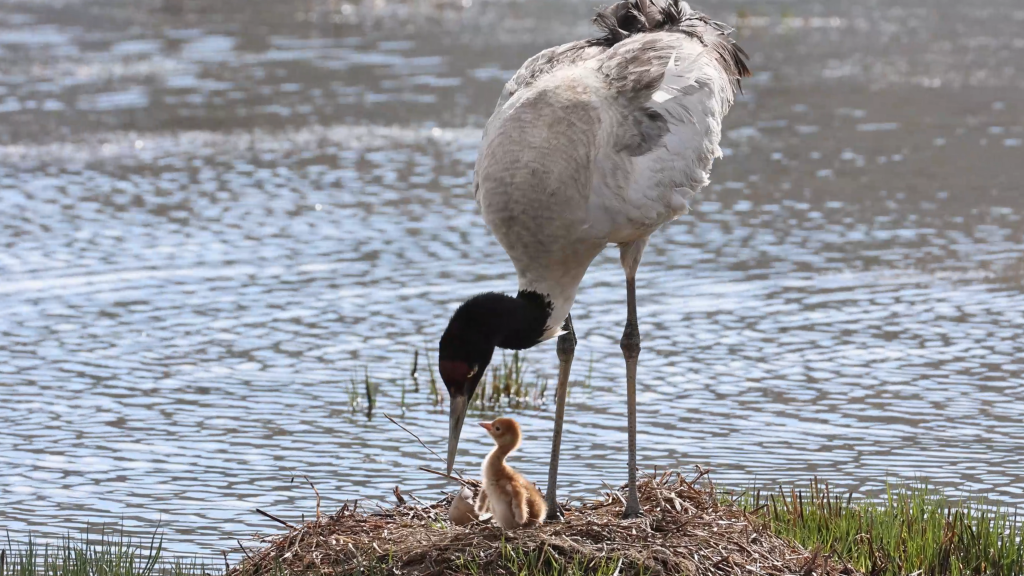 黑頸鶴正在調(diào)整蛋的位置和姿態(tài)。