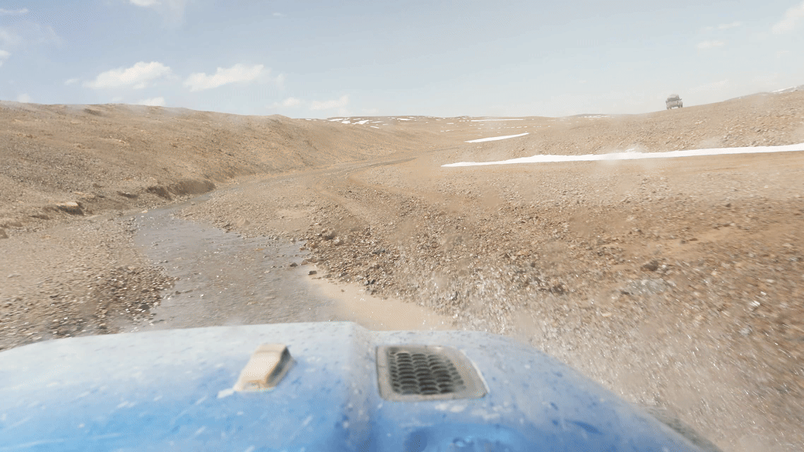 路面逐漸從“蜿蜒崎嶇的溪流”變成“波濤洶涌的大海”,越野車里好像一個迪斯科舞池,每件東西都像被賦予了生命一般蹦蹦跳跳,伴隨著我們這些乘客的驚呼,連同引擎的轟鳴一起,被揉碎在無邊荒原的呼嘯風(fēng)聲中。