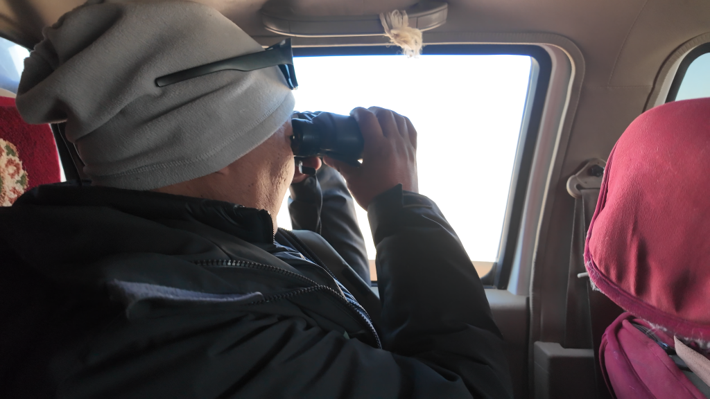 為了拍下野保員的日常工作和藏羚羊遷徙的宏大場面,我們一行跟隨巡護車,向著保護區(qū)核心區(qū)進發(fā)。