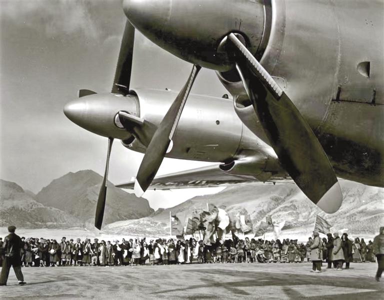 無畏開拓,筑起雪域天路。1955年底,黨中央、國務(wù)院作出開辟北京至拉薩民用航線的重要指示。1956年4月26日,當(dāng)雄草原上建起了簡易跑道;5月26日,韓琳機(jī)組駕駛伊爾-12型飛機(jī)從北線試航,穿破層層云障,成功降落在雪山環(huán)抱的當(dāng)雄機(jī)場,填補了我國高高原飛行的空白;9月5日,歷時118天,西藏第一座機(jī)場——當(dāng)雄機(jī)場建成。此后的10年間,多次組織試飛。1965年3月1日,民航第一飛行大隊孫權(quán)貴和畢春芳機(jī)組駕駛伊爾-18型飛機(jī)從北京起飛,次日平穩(wěn)降落當(dāng)雄機(jī)場,北京-成都-拉薩航線正式通航,西藏民航波瀾壯闊的發(fā)展篇章就此開啟。
