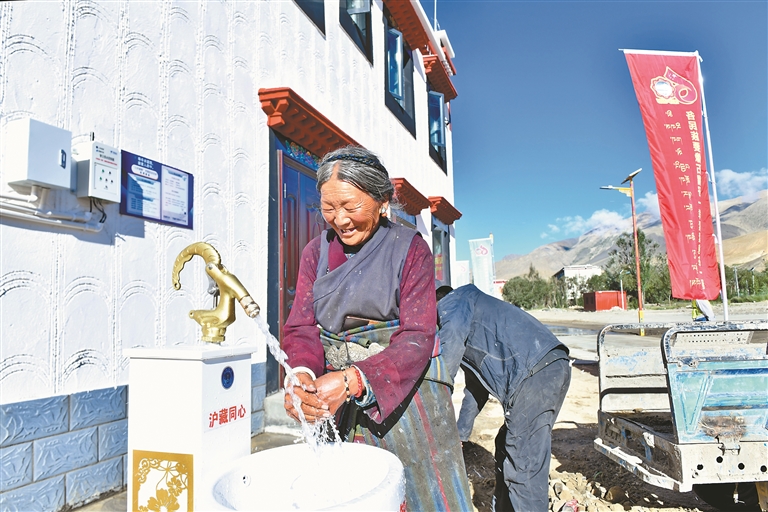 8月7日,拉姆一家分到一棟110平方米的新房。當她擰開锃亮的水龍頭,熱水涌出的瞬間,淚水奪眶而出:“以前兒子沒法在家里洗澡,現(xiàn)在能了,特別開心。”這簡單的心聲,道出森嘎村600多名村民共同的喜悅。