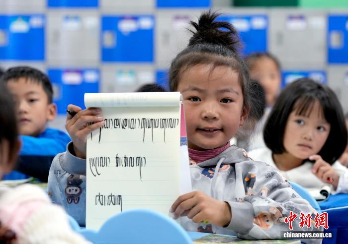 9月1日,拉薩市第一小學(xué)一年級(jí)二班的學(xué)生們?cè)诓卣Z文課上書寫藏文。近日,西藏拉薩市秋季學(xué)期開學(xué),各項(xiàng)教學(xué)工作有序開展。中新社記者 李林 攝