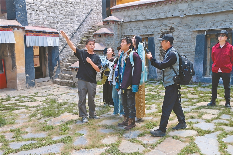 “推開強(qiáng)欽莊園厚重的木門,仿佛一步跨入百年前的生活場景。”在藏生活多年的網(wǎng)絡(luò)達(dá)人張語洵手持云臺(tái),鏡頭緩緩掠過雕梁畫棟的藏式建筑與保存完好的傳統(tǒng)家具,語氣中難掩激動(dòng)。
