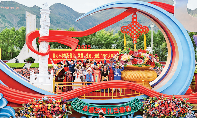 2025年8月21日上午,西藏各族各界干部群眾約2萬人歡聚拉薩市布達(dá)拉宮廣場,熱烈慶祝西藏自治區(qū)成立60周年。圖為游行的彩車通過布達(dá)拉宮廣場。 新華社記者 謝環(huán)馳/攝