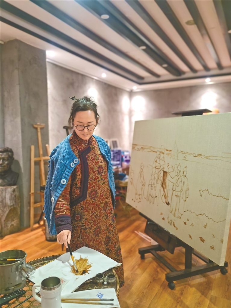 羽芊正在創(chuàng)作。