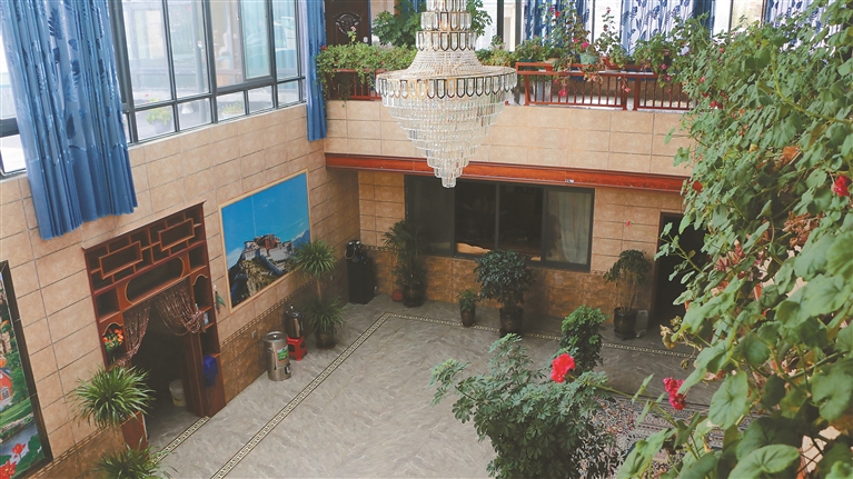 “現(xiàn)在的日子,以前想都不敢想?!眲偨M穿好睡衣從浴室出來,倒上一杯酥油茶,愜意地靠在沙發(fā)上。陽(yáng)光穿過屋頂?shù)牟A旎ò?,在一樓墻壁投下斑駁的光影。望著二樓的房間,剛組回憶起了半個(gè)多世紀(jì)前。