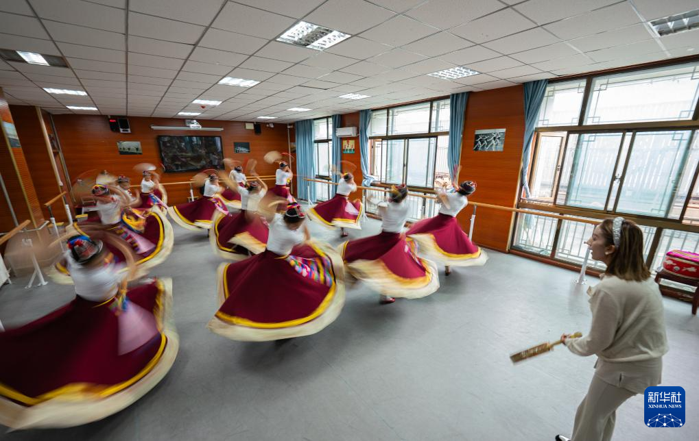 9月9日,在拉薩市第二中等職業(yè)技術(shù)學(xué)校,孩子們在練習(xí)熱巴舞。新華社記者 張笑宇 攝