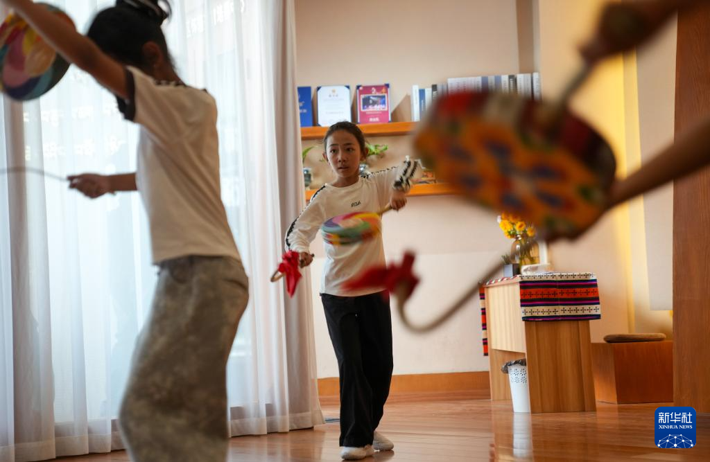 9月13日,在拉薩市塔耶梅朵美育培養(yǎng)中心,孩子們在練習(xí)熱巴舞。新華社記者 晉美多吉 攝