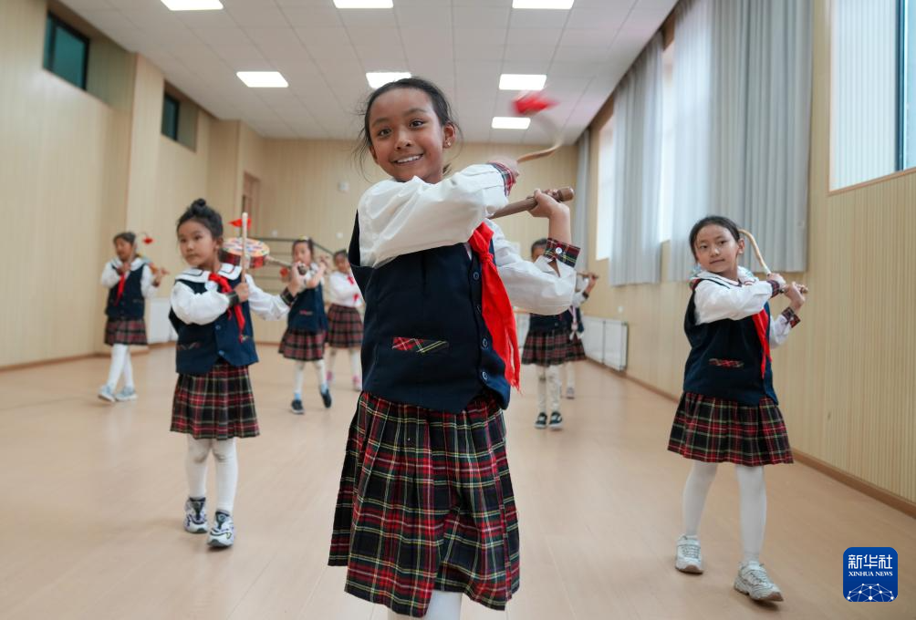 9月11日,在拉薩市實(shí)驗(yàn)小學(xué),孩子們在練習(xí)熱巴舞。新華社記者 晉美多吉 攝