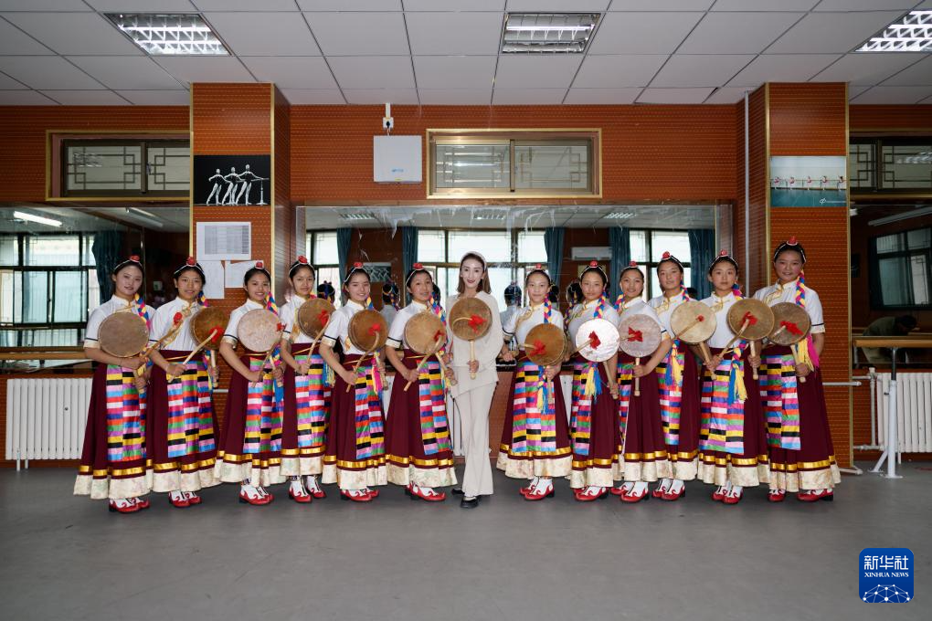 9月9日,在拉薩市第二中等職業(yè)技術(shù)學(xué)校,尼瑪卓瑪老師(左三)在指導(dǎo)孩子們舞蹈動(dòng)作。新華社記者 晉美多吉 攝
