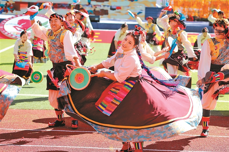 開幕式上的群眾游行方隊。記者 平措朗加 溫凱 攝