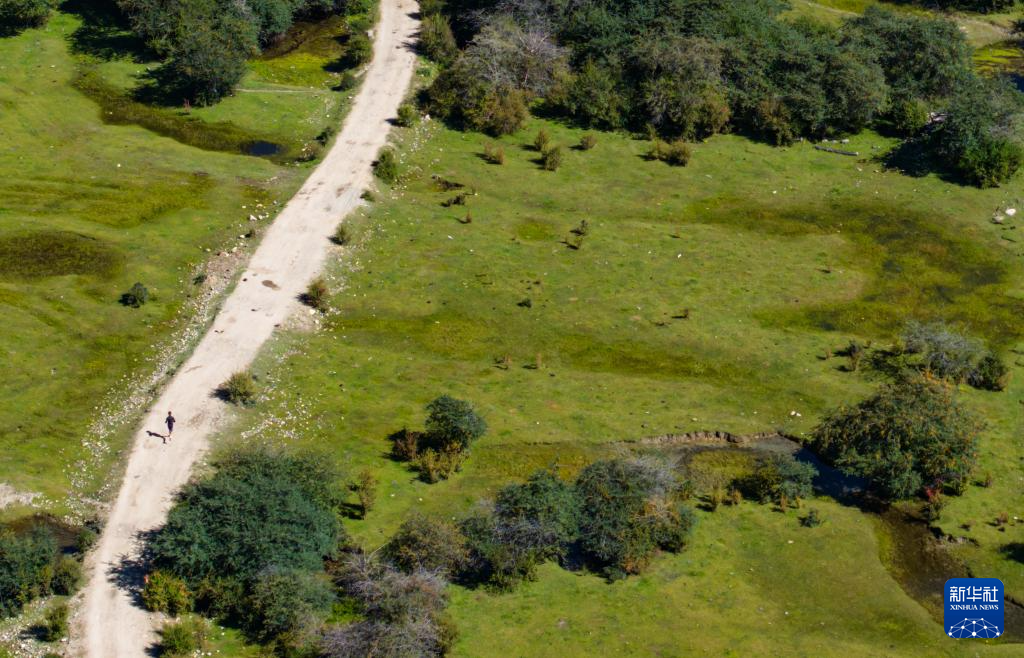 9月27日,參賽選手在賽道上奔跑(無人機(jī)照片)。新華社記者 格桑朗杰 攝