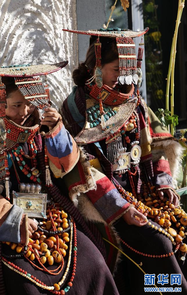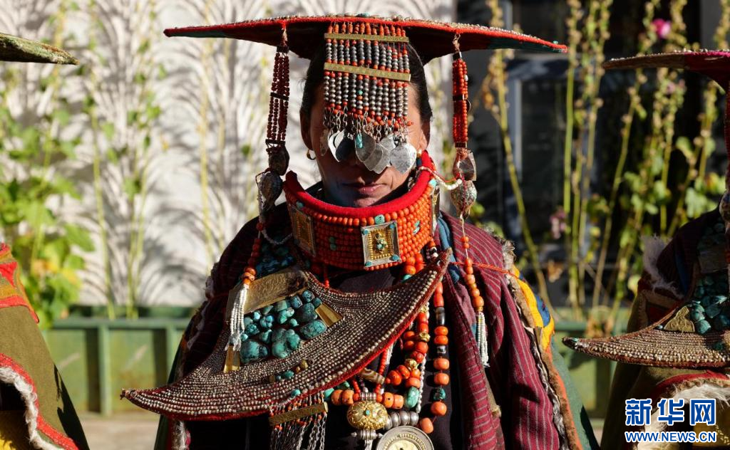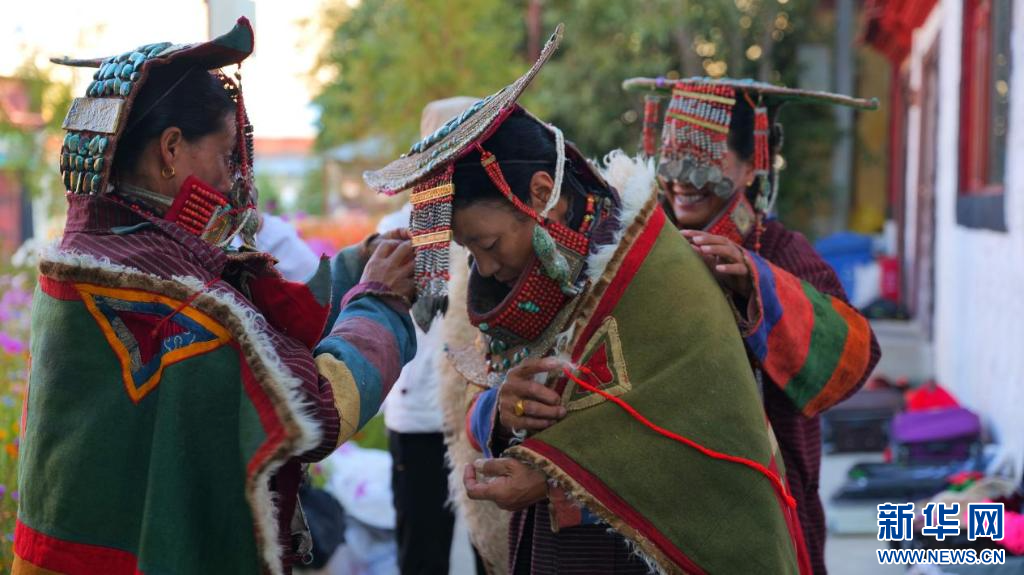 圖為科迦村村民在展示普蘭服飾(9月23日攝)。新華網(wǎng) 柑丹鴦琦 攝