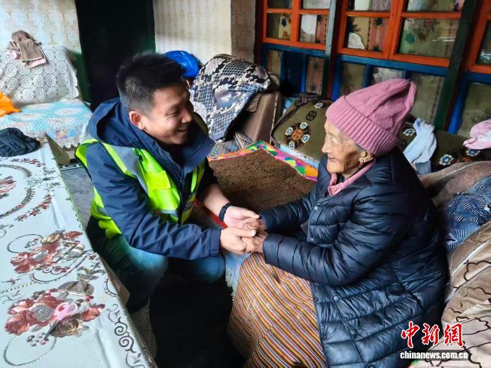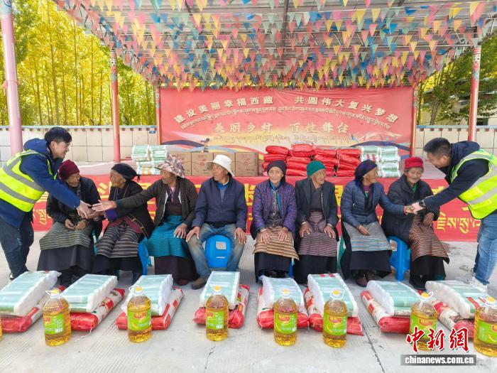圖為西藏山南瓊結(jié)風(fēng)電項目赴仲堆村慰問孤寡老人。中建二局 供圖
