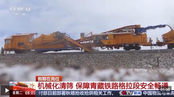 國慶中秋假期是團圓時刻,但也有不少人依舊堅守崗位,守護著千家萬戶的團圓。在平均海拔4500米的青藏鐵路格爾木至拉薩段上,西寧工務(wù)機械段的職工們假日不停工,加緊推進機械化清篩施工,保障假期高原鐵路的安全暢通。