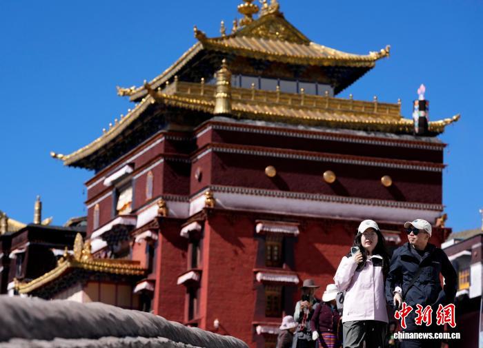 10月7日,外國游客在西藏日喀則市扎什倫布寺參觀。扎什倫布寺始建于公元1447年,是中國國家5A級旅游景區(qū)。憑借深厚的歷史底蘊和獨特的文化魅力,吸引眾多中外游客參觀游覽。中新社記者 李林 攝
